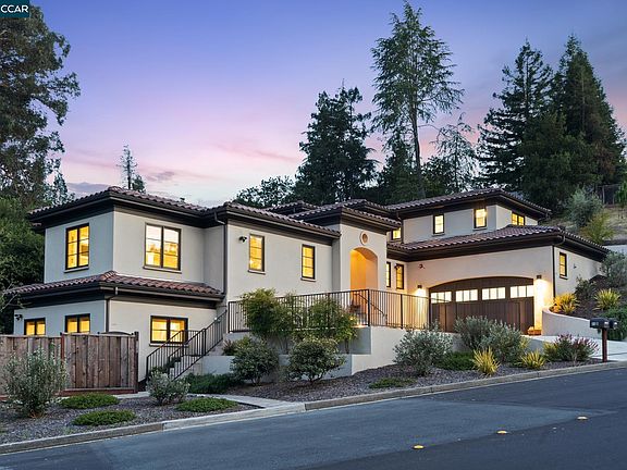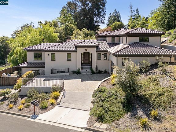 Mediterranean-style home with a 2-bedroom 1.5 bathroom ADU constructed in 2020 (architect Alan Page) offers a blend of thoughtfully selected modern finishes with stunning views of Mt Diablo. Formal entryway, with soaring ceilings, immediate immerses one into the home. This gives way to the hub of the home, the great room with a chefs dream kitchen. Oversized center island, quartzite countertops, Ambrosia ceramic tile backsplash, Wolf Sub-Zero stainless-steel appliances including paneled fridge/ freezer, pendant lights and beamed tray ceiling. The formal dining room truly captures the incredible views of Mt Diablo with additional bar area and wine storage. Spacious main floor primary suite with doors to secluded patio, double sinks, stall shower, soaking tub and walk-in closet. Hardwood floors, arched doorways, and French doors throughout create a sophisticated atmosphere and awash of natural light. Three spacious guest bedrooms upstairs; one with ensuite bathroom and additional guest bath both highlighted by quartz counters and contemporary tiled showers. Large main floor laundry room/mud room with tiled floors, storage, and laundry sink. Remarkable 2-bedroom ADU with separate entrance, hardwood floors, stainless steel appliances, quartz countertops, and laundry.