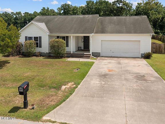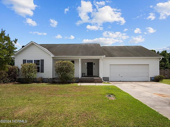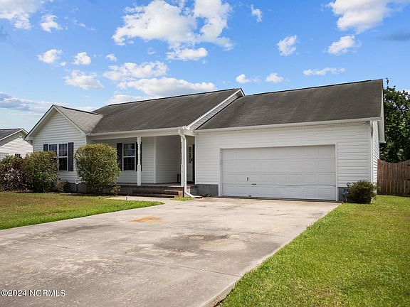 *NOW OFFERING $5,000 use-as-you-choose funds to buyer!* Welcome to 315 Shadyrock Path where you can retreat to live the sweet and simple life. This charmer features no HOA or city taxes and it's within close proximity to military bases and all the amenities the growing town of Richlands has to offer. It features a classic covered rocking-chair front porch, pristine white vinyl siding, and an inviting front door with sidelights to welcome you. Step inside to an open floor plan with plank-style flooring and a vaulted ceiling, creating a bright and airy atmosphere as the living spaces are filled with natural light. The updated kitchen boasts dark cabinetry, sleek countertops, and a stylish backsplash. Enjoy your coffee by the bay window, perfect for soaking up the morning sunshine. The primary suite offers a walk-in closet, dual sinks, walk-in shower, and a deep soaking tub for ultimate relaxation. Nestled on just under half an acre, the spacious fenced yard also provides plenty of room for catching fireflies on a summer's night. This one is the perfect place to call home sweet home - make it yours today!