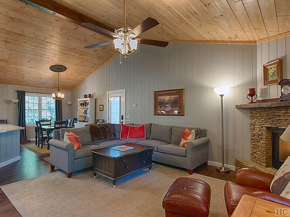 Cuter than a button with curb appeal galore this charming Shelby Place cottage has been renovated to the nines and is move-in ready! From the beautiful flooring throughout to the stainless and granite kitchen to the beautifully tiled and renovated baths, this home has it all! Soak your cares away in the claw foot master bath tub or enjoy the sounds of the stream below while enjoying morning coffee on the covered deck. Enjoy reading a good novel while snuggling next to a roaring fire in the open living area with soaring tongue and groove ceilings. An attached carport offers peace of mind for vehicle storage in inclement weather and features a storage room that could be a workshop, if desired. Low stress with yard maintenance included in the HOA fees and close to downtown Highlands! A pretty and quiet neighborhood, offering amenities such as pickle ball courts and a generously sized community guest home, where overflow company may stay during visits. This home is the perfect mountain retreat and has an excellent rental history, for those looking for a turnkey investment property. The work has been completed for you!