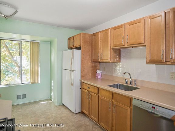 open concept design with vast windows, functional kitchen, dining area, family room, cozy gas fireplace and a powder room. On the third level you will find a spacious master bedroom with direct access to a full bath and a private balcony. Second bedroom offers plenty of storage. This Hillside Village lovely condo is located just steps from Seastreak Ferry for an Easy Commute to NYC. Restaurants, Parks, Marinas, Beaches are right in the immediate area! This home is in need of some love and touch ups to customize into your dream home!