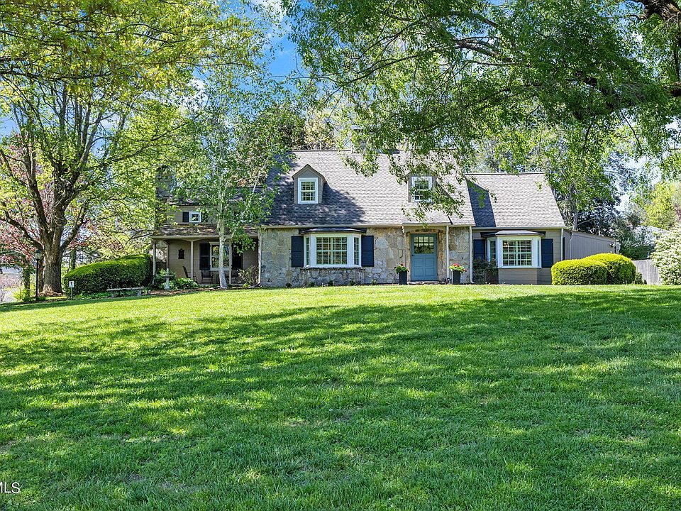 Discover the epitome of timeless elegance in this enchanting English-style stone cottage, nestled on a sprawling one-and-a-half-acre lot, where the beauty of nature meets exquisite craftsmanship. As you enter through the welcoming front door, you're greeted by a sense of warmth and sophistication. The inviting living room, adorned with a cozy fireplace and bathed in natural light streaming through bay windows, sets the tone for intimate gatherings and relaxed evenings. Adjacent to the living room, a covered patio beckons, offering a tranquil retreat to savor the enchanting views of the lush surroundings. Imagine sipping your morning coffee or hosting al fresco dinners amidst the gentle rustle of leaves and the scent of blooming flowers. The heart of the home, the primary bedroom on the main floor, is a sanctuary of luxury and tranquility. With its own fireplace, it provides a haven for relaxation and rejuvenation after a long day. Three additional bedrooms offer ample space for family and guests, each thoughtfully designed with comfort and style in mind. Indulge in the timeless allure of architectural details such as hardwood peg floors, high ceilings and bay windows that add character and charm to every room. Whether you're unwinding in the cozy den, working in the sunny office, or hosting festive gatherings in the spacious dining room, every moment spent in this exquisite home is a testament to refined living. Outside, the enchanting playhouse invites children's imaginations to soar, while the expansive grounds offer endless possibilities for outdoor enjoyment and exploration. With its prime location and undeniable curb appeal, this property truly embodies the epitome of gracious living. Don't miss the opportunity to make this enchanting English-style stone cottage your own. Schedule a viewing today and discover the timeless beauty and unmatched charm of this exceptional home.