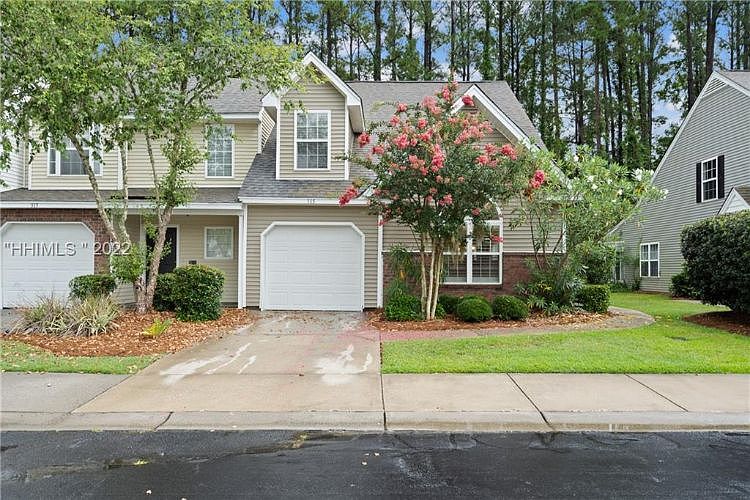 Impeccably maintained, end-unit townhome located across the street from the fabulous restaurants and stores on Buckwalter. This home has many great features, including: first floor, spacious primary bedroom with walk-in closet, ideal open floor plan with oversized kitchen overlooking the dining area and living room, Carolina Room with private, wooded views out back, and more. Enjoy stress-free living with new HVAC (2021) and brand new roof (2022). Upstairs features 2 large bedrooms and a full bath. LVP floors throughout downstairs, gorgeous lagoon and fountain views through the arched kitchen window. 1 car garage with epoxy flooring.