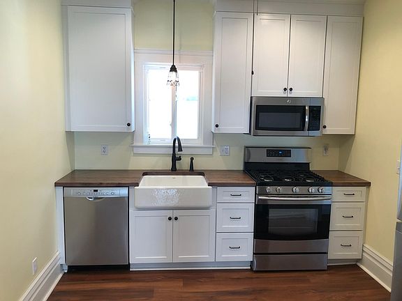 315 State Street, Grove City, PA Due to overwhelming demand to view the house, I must CANCEL the open house scheduled for Saturday. I will select qualified candidates who complete an application. Minimum requirements: verifiable monthly income of $4200 or $50,400 a year (three times rent and utilities), credit score of 625 or higher, no late payments, no evictions, and clear criminal background check. I am very sorry that I must prescreen but I cannot accommodate the number of people that want to see the house. Please read the entire description before asking a question. If you are reading this, the house is available, no need to ask. The house is available on July 1. 4-5 bedroom, 2.5 bath house located in a quiet neighborhood near Hillcrest Circle in Grove City Borough. The first floor contains a kitchen, living room, dining room, study, parlor, sunroom, and half bath. Kitchen and bathroom were fully customized by Steigerwalds Kitchen and Baths. The kitchen is equipped with stainless steel appliances, gas chef stove with a center burner, built-in microwave, dishwasher, island with seating, and large pantry. The second floor contains three bedrooms and a Jack/Jill bathroom (tub and large vanity separated by pocket door from double bowl vanity and storage). Third floor has an open floor plan with closets on each side (can be used as one or two bedrooms). Third floor is carpeted, first and second floors have matching laminate flooring. Full basement with finished full bathroom, laundry hookups, and large storage area. Off street cement driveway for three cars with additional street parking available. Small fenced in yard and private patio in backyard with an additional large unattached storage building. Small dogs are allowed as the back door has a dog door to the fenced back yard. Rent is $1095 a month, utilities (including gas, electric, water, sewage, and garbage) are billed separately and are approximately $300-$350 a month. Tenant is responsible for cutting the small yard. Applications with credit and background checks are conducted. No smoking. Pets considered with additional deposit. Security deposit is $1100.