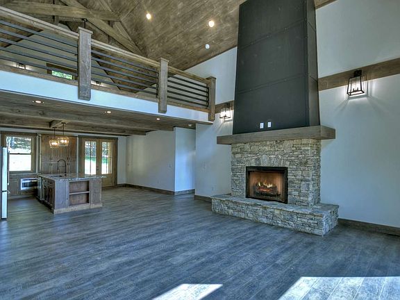 NEAR COMPLETION! Grande style creekfront lodge in upscale, gated neighborhood! This cabin will appeal to the highest of standards in modern rustic nature...open concept great room w soaring cathedral ceilings as well as wood & beam accents, custom stone fireplace, rough circular sawn hardwood flooring, spacious kitchen w breakfast bar, dining area, open loft space, laundry/mud room, Master on main level, full finished terrace level complete with rec/bonus room, 3rd & 4th bedroom and full bath. Outdoor fireplace on oversized deck as well as fire pit area. Noisy creek frontage, useable acreage, pastoral views, great parking space. STR's allowed.