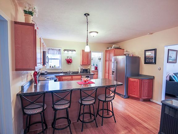 Fly creek flowing through back yard with a large shed. Huge deck has been added off the back mud room area. Laundry room up stairs. New flooring, plumbing, cabinets electrical...total gut and remodeled no repairs needed.