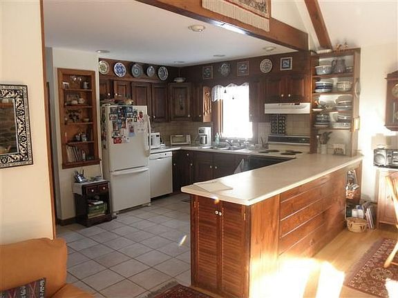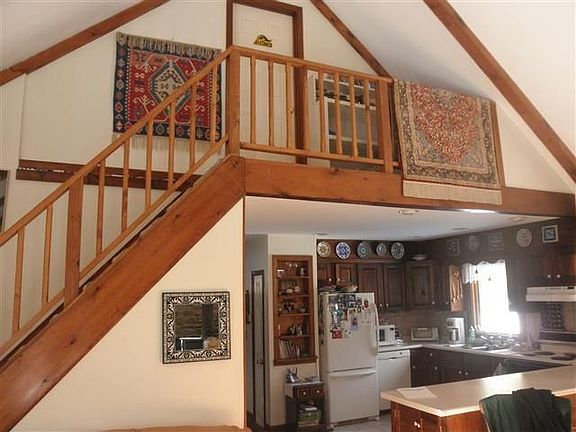 Light and bright with everything ready for a new family. New windows, new painting, tiled large kitchen & hall floors, efficient wood stove set in stone fireplace, 3 bedrooms, TV room, 1.5 baths, 2 tier deck (25x8 & 25x14) with hot tub and arbor, large finished family room(18x22)over garage with wood stove and media set-up. Sunny 3-season porch to sit and enjoy the good life. Quiet road with pastoral views of stone walls, white birches and babbling brook. What more could you want??