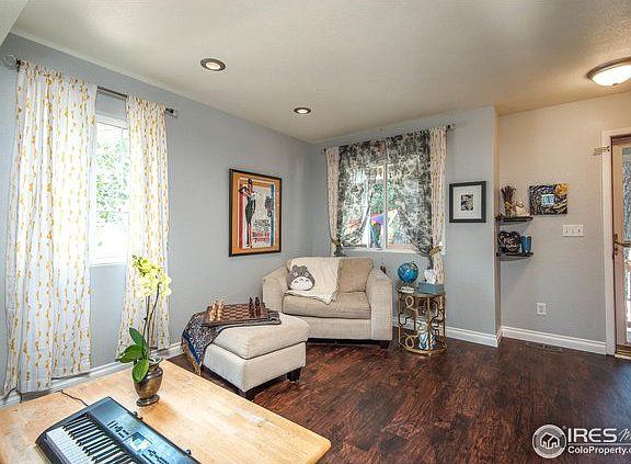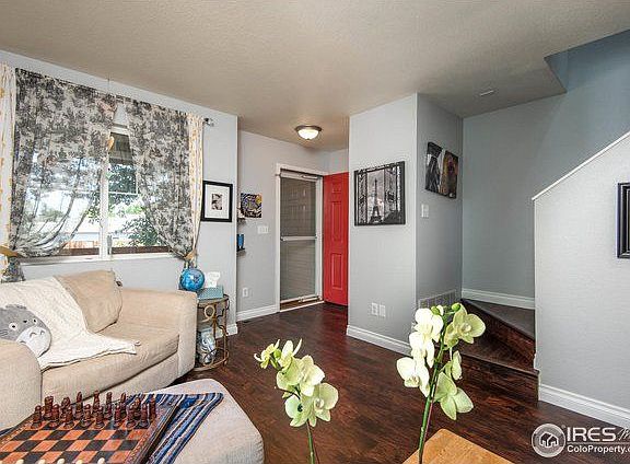 Amazing updated 3 bedroom, 4 bath, 2 story end unit townhome with finished basement and 1 car detached garage in historic downtown Berthoud. This light and bright home is sure to impress with new updated kitchen including soft close cabinets, crown molding, copper sink and hood, dishwasher and refrigerator. New interior paint, new laminate wood floors and baseboards also accommodate this fine home. Both bedrooms upstairs have private full baths, plus there is an additional bedroom, bath and family/rec room in the daylight basement. Relax outside on your private deck with small yard. Close to breweries, restaurants, post office and library. HOA is in process of replacing the deck. First American Home Warranty is included.