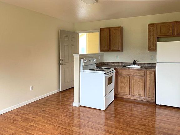 One bedroom and one bathroom apartment with off-street parking. Upstairs unit with large living room, open kitchen with plenty of cabinet space, large bedroom with oversize closet and spacious bathroom with oversize stall shower. Private deck overlooking nature preserve and pastures. Newer paint, flooring, window coverings and fixtures. On-site coin-op laundry. Located close to shopping, restaurants, bus line and within close walking or biking distance to HSU. Water, sewer and garbage paid. No smoking and no pets. Landlord pays water, sewer, and garbage.