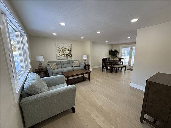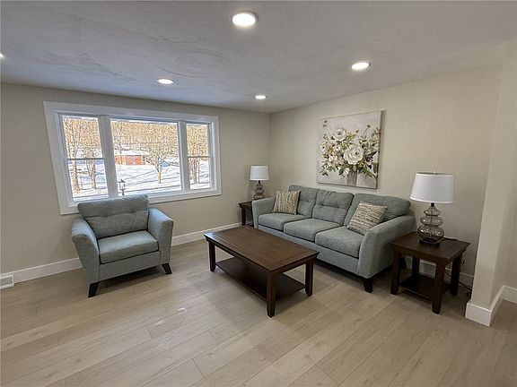This beautifully updated brick ranch is nestled on a spacious 1.15-acre lot, offering both privacy and great outdoor space. NEW roof, windows, driveway on exterior. Boasting a thoughtfully designed open floor plan, this home is perfect for modern living and entertaining. Step inside to find a bright, airy interior with fresh updates throughout. The NEW kitchen is a standout, featuring two-tone cabinetry that blends style with function, Quartz counters, stainless appliances, backsplash; while the open layout ensures a seamless flow into the dining and living areas. Three bedrooms with nice closet space, jack-n-jill bath. NEW flooring, lighting, finished lower level with full bath, electrics, HVAC! Covered back patio to back yard. Extensive driveway with turn around.