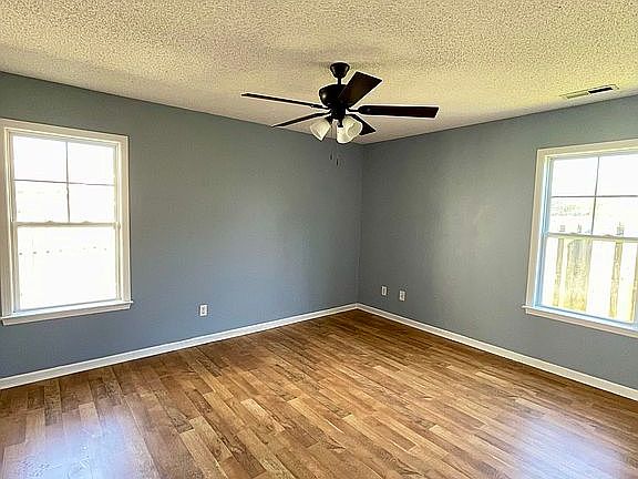 The Owner's suite is the perfect retreat and includes its own, ensuite bathroom. The two additional bedrooms share the hallway bathroom. The home features brand new wood-look tile in kitchen, updated lighting fixtures, two brand new remote controlled ceiling fans, and access to an ADP alarm system. The backyard is completely fenced for the perfect start to a private oasis. Seller also installed new AC unit in 2014.