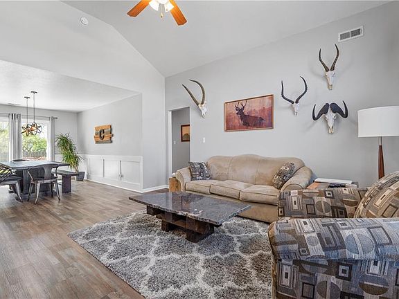 • Ceiling Fan(s), Kitchen Island, Painted Cabinets, Pantry, Vaulted Ceiling(s), Walk-In Closet(s)