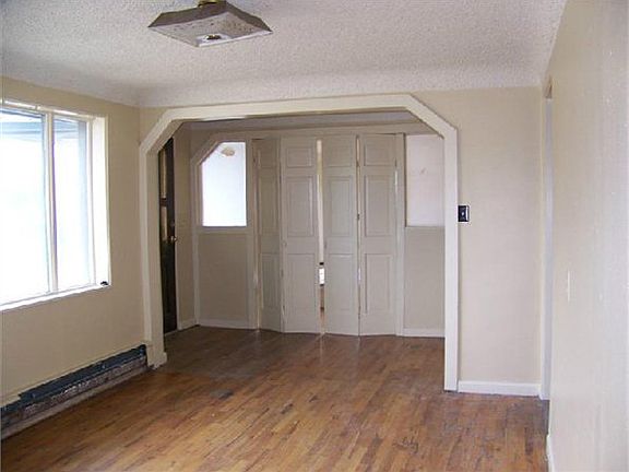 This 3 bedroom/2 bath home has three large living room areas, one of which has a fireplace. Original wood floors in dining room, one of the living rooms and bedrooms. Dining room has a stone hearth for a wood stove. New tile floors in kitchen and one bath and new interior paint. Kitchen needs to be finished and needs new appliances. Natural gas hot water base board heat. One of the living areas could be turned into additional bedrooms. Outside has a patio area and large fenced backyard with an apple tree. Large two car attached garage with concrete floor and workshop area. Also, adjacent to garage is a nice storage area with shelving. Home does need some TLC.
