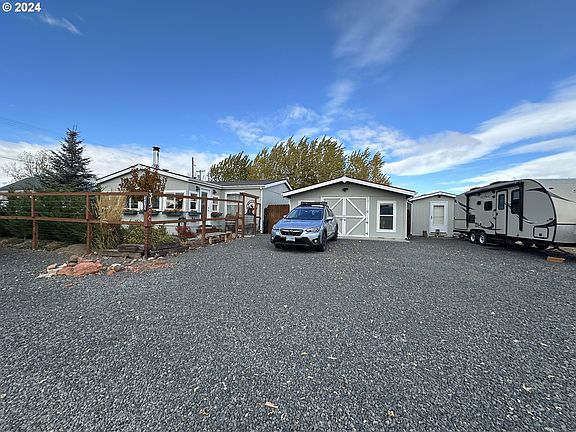 Welcome to this beautifully updated 3-bedroom, 2-bath home in the charming town of Condon, Oregon! This home boasts a host of amazing upgrades and modern features that make it truly one-of-a-kind.Inside, you'll find shiplap accents on the interior walls, creating a warm, rustic charm throughout the living spaces. The spacious living room is enhanced by a cozy woodstove, perfect for those cool Oregon evenings. The heart of the home is the newly remodeled kitchen, featuring new cabinets, a large island, and smart lighting that offers both functionality and style. The kitchen is an entertainer's dream!Both bathrooms have been completely remodeled with beautiful tile finishes, adding a touch of luxury to this already stunning home.Outside, you'll appreciate the 4 storage buildings—perfect for tools, equipment, or extra storage space. The detached garage offers convenience and additional space for parking or projects. Enjoy outdoor living in the entertaining area with a gazebo, ideal for hosting family gatherings or relaxing in the fresh air.This property truly has too many upgrades to list—please contact us for a complete list of features! Don't miss the chance to make this beautiful home yours. Schedule a showing today!