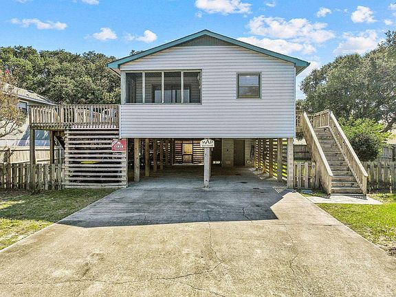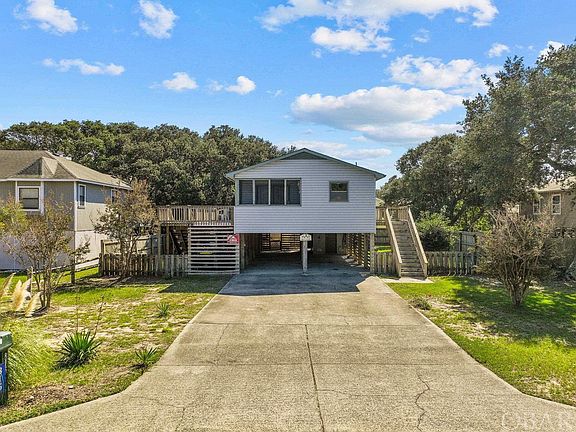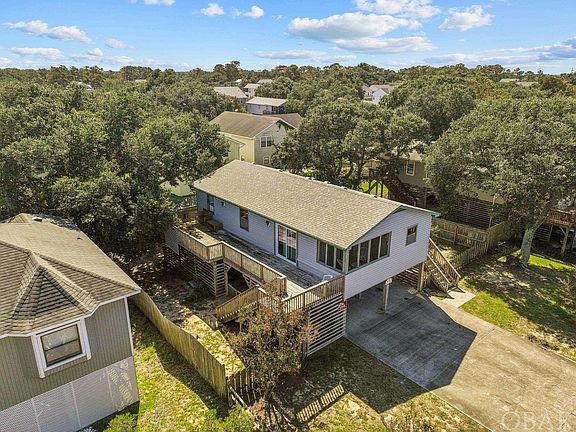 Adorable and affordable! This cute 3 bedroom cottage is a just right beach home, with tons of natural light and simple floor plan. Walk to the best sunsets right down the street with views overlooking Kitty Hawk Bay. There is a spacious kitchen with ample cabinets and stainless steel appliances, a roomy dining area that is open to the living space, creating a nice open floor plan. Sliding doors from the living area open to a covered screen porch or to the expansive sun deck, providing for great outdoor living! Beautiful live oak trees give this property incredible Outer Banks character, and the fenced in yard gives the back so much usable private space. The fully concreted carport area provides additional outdoor living space, set up with a picnic table.. just imagine the possibilities.. and an outdoor shower, the perfect beach accessory. The shed in back yard is great extra storage, or convert to a tiki bar or workshop. Great neighborhood is very quiet and has easy access to walking or biking trails along Bay Drive, and a quick shot over to the beach, Avalon Pier and tons of area attractions.  Sold fully furnished! Put this on your must see list!