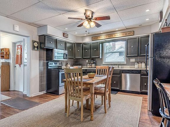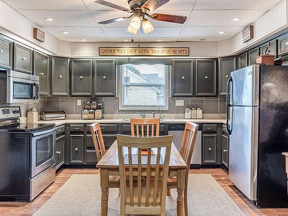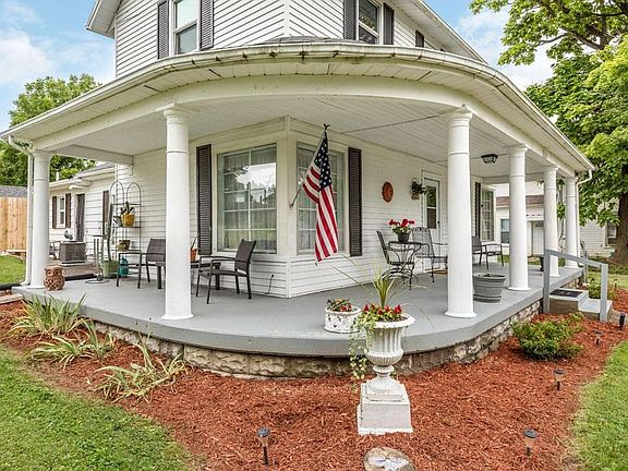 Impressive two story home with gorgeous wrap around front porch '' the porch house '' with big fenced in backyard, newer privacy fencing, patio addition, oversized 4 car detached garage, newer Pella Windows throughout, newer furnace & ac ( 2015 ), newer three dimensional roof ( 2015 ), 1st floor master bedroom, remodeled kitchen w/ stainless steel appliances, big eating space, dining room, living room, family room, 1st floor laundry, big upstairs bedroom, remodeled full bath, watch 4th of July Fireworks from your front porch! Home Warranty in place for new Buyer!