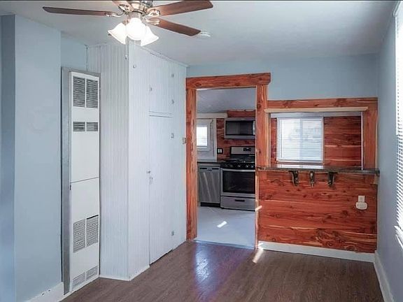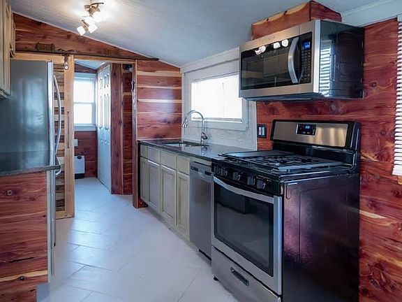 Available soon! 1 bed 1 bath house in Pacific mo. Walking distance to brew house brown jerry's, deangelos, elks club, city park, pool, soccer park and lots more. This is a small efficient house with a very unique "spare no expense" full remodel, new windows and very low cost bills. The remodel features lots of shiplapped Missouri red cedar, custom metal work, New granite countertops brand new stainless appliances brand new combined laundry machine. Tankless gas hot water. There will be a screening process and a minimum 1 year lease for a single person or a couple only. Pets will be considered. Also includes an oversized detached 1 car garage which has been finished with a small corner bar, custom cabinets smart tv and sound system already hooked up and in place, this space is very versatile, great for use as fair weather party space when it's not parked in. Big driveway and Very nice yard with fire pit as well