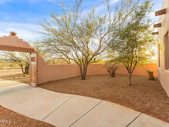One of a kind ICF custom home located close to Sonoita wine country, Tucson, Sierra Vista and Benson get away!! Stunning Santa Fe-style property featuring a 3-bedroom, 2.5-bath main residence plus an attached 1-bedroom, 1-bath casita with a custom Murphy bed and spacious open great room. An oversized detached 3.5-car garage includes a quarter bath and dedicated office space. High-end upgrades abound, highlighted by a beautifully landscaped, private backyard with an in-ground SALT WATER pool and SPA with solar heating. Enjoy seamless indoor-outdoor living with an expansive lanai wrapping around two sides of the home and connecting to the casita. The versatile casita is perfect for guests, entertaining, or an ideal man cave. Breathtaking mountain views and exceptional privacy throughout. This home is exceptionally well built and insulated with an Foam/ Block/concrete ICF build appox 10 inches. Seller's say during the summer they do not us their A/C!!! Upgrades throughout the home included wood vegas everywhere and tongue and groove ceilings and Anderson window and doors too!!! Bring all your animals, no HOA, VIEWS, VIEWS AND MORE VIEWS! Seller's loan is VA assumable at 2.75 percent. Also, if you did not need the Casita you could rent it out as it has a separate entrance and would help with the mortgage payment!