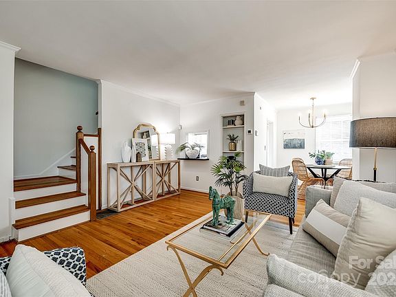 Desirable end-unit condo in Selwyn Village! This wonderful unit features fresh paint, open layout, hardwood flooring, updated lighting and abundant natural light. Large living room and dining area. White kitchen with gas range and window over sink. Two story unit with two bedrooms upstairs and neutral bathroom with tile surround shower/tub combo. Laundry in unit. Enjoy outdoor living on the spacious deck overlooking the serene greenway—perfect for relaxing or entertaining. Prime location within the complex, offering both privacy and convenience. Don’t miss this rare opportunity! Move in ready - updated HVAC unit and electrical panel. Best location in the community! Walking distance to Selwyn Ave Shops, Montford bars/restaurants, Park Road Shopping Center & backs up to greenway access!