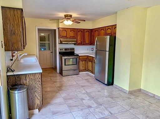 This 3 bedroom low maintenance vinyl sided ranch with large spacious yard and attached 2 car garage is ready for it's new owners! Wonderful location in Hampden close to surrounding towns, amenities, shops and more! The walk out unfinished basement allows for a plethora of possibilities and the opportunity to double the square footage of this already nice sized home. Boasting hardwood floors, remodeled bathroom with granite counter top, good sized bedrooms and a roomy eat in kitchen! There is a fenced in portion of the yard right by the house and plenty of open areas as well. Private backyard surrounded by tall established trees, and set back from the main road with off street parking and room to turn around if needed. In addition, all the appliances are included! Just bring your paintbrush and some TLC to customize and make this house your home!