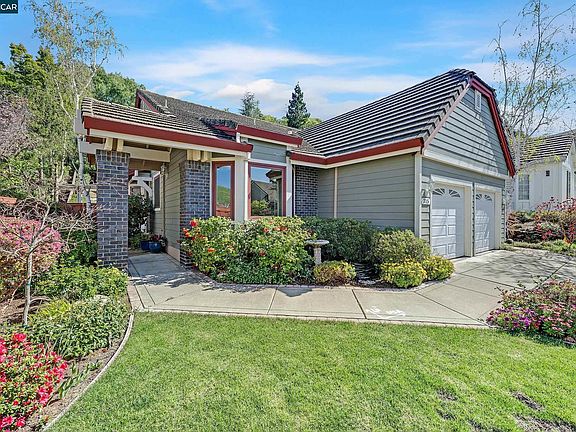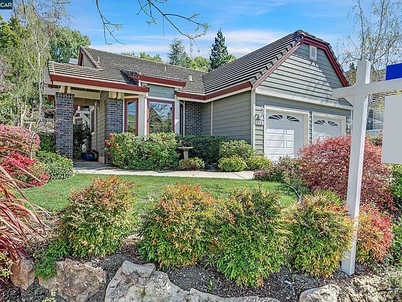 This adorable single story home has a functional floorplan and is located on a cul-de-sac in the desirable Oakhurst community. It has hardwood floors, vaulted ceilings, and an updated hall bath. The eat-in kitchen has lots of natural light, a dining nook with bay windows, a solid surface cooktop and plenty of cabinet and pantry space. The large common room has a fireplace and an area for a formal dining table for entertaining guests. The spacious owner’s suite has vaulted ceilings, dual mirrored closets and room for a sitting area to relax and enjoy the peaceful backyard views. The en-suite bath has a large vanity area with dual sinks and an upgraded shower. There is an indoor laundry area with a washer and dryer. Enjoy the outdoors in the lovely tranquil backyard garden with pavers, retaining walls, a pergola and a built-in barbecue area for outdoor cookouts. The hillside steps lead to a peekaboo view of the hills amidst the mature trees. Live close to downtown Clayton, schools, shopping, restaurants, parks, library and Oakhurst Golf Course and Country Club. Don't miss this gem!