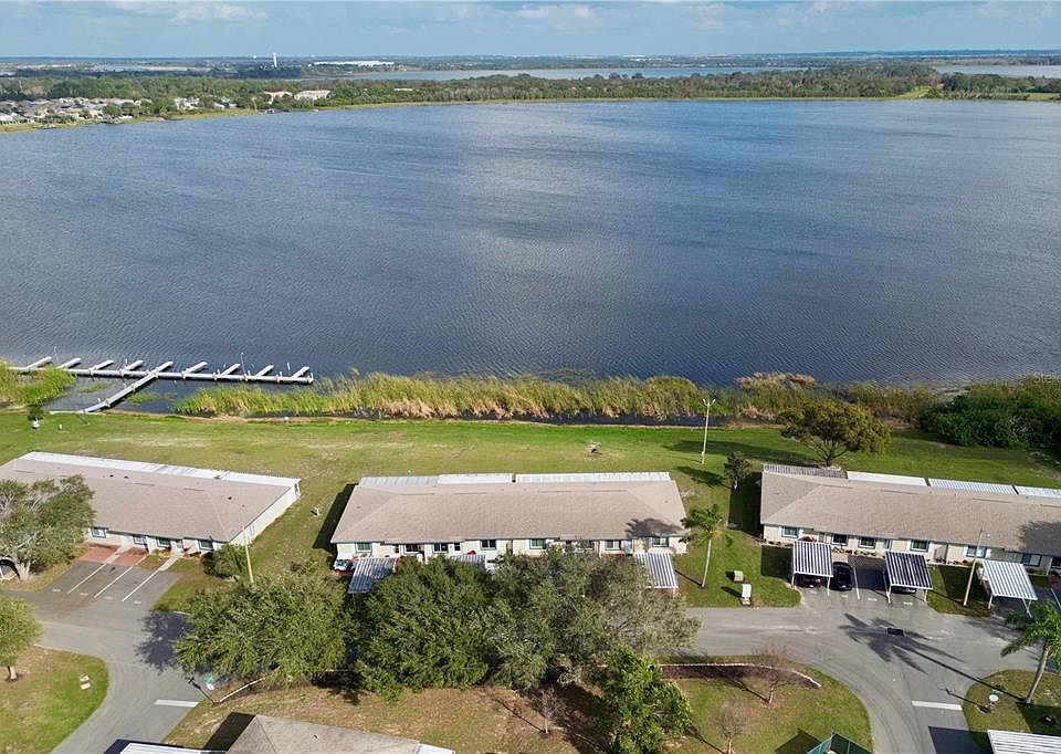 LAKEFRONT! Well maintained 3 bedroom, 2 bathroom condominium on Lake Smart, in the heart of the Winter Ridge community in Winter Haven, is ready for a new owner. Offers Chain of Lake Access, Dock, Boat Slips, Pool, Clubhouse, Shuffleboard, and more. Just a 20 minutes' drive to Disney and other central Florida amusement parks. Beautiful, private view and access to Lake Smart. Maintenance free living! Neatly maintained, with pride. Installed New Trane A/C system and Energy efficient double pane windows in front (living room and master bedroom) in 2018. Spacious enclosed back porch with new vinyl siding, air conditioning, glass windows, and vertical blinds. Kitchen and bathroom sinks, garbage disposal, and toilets replaced 2013. Quality ceramic tile wall to wall installed 2014. Hurricane panels front and back windows 2015. Aluminum parking cover in front patio conveys with the property. Two parking spaces, one covered. Seller financing available. Do not wait, it will not last long!