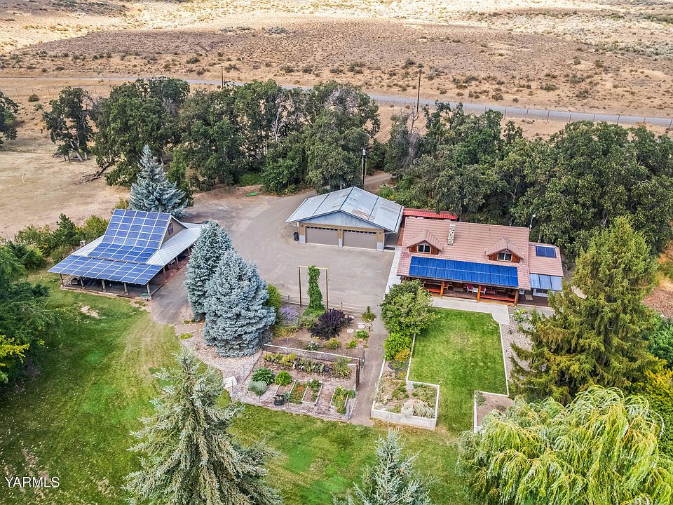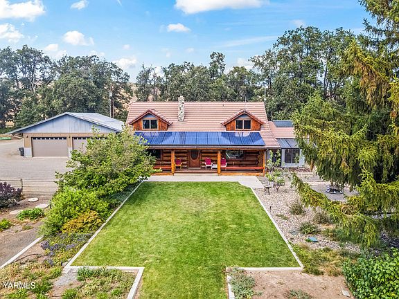 Discover a truly one-of-a-kind generational property, where craftsmanship, sustainability, and natural beauty come together in perfect harmony. At its heart is a stunning custom log home, built from the last of its kind sawn timber and designed to stand as both a timeless retreat and an efficient net-zero sanctuary.The home's expansive covered porch invites you to take in sweeping views of the land, while inside, a custom double-sided stone masonry heater fireplace with a built-in pizza oven serves as the warm and inviting centerpiece of the home. The chef-inspired kitchen blends high-end finishes with reclaimed materials, striking a perfect balance of luxury and rustic charm. Just off the kitchen and dining area, a spacious three-season gathering room offers the ideal space for entertaining or relaxing while immersed in the surrounding landscape.Expertly over-built with efficiency in mind, this residence embraces a fully self-sufficient lifestyle with solar power and a private well. Adding to its charm, the property includes a 950 sq. ft. historic cabin, carefully relocated and reassembled onsite. The cabin features its own wrapped porch, solar power system, and the authentic character of a bygone era.For additional utility, an oversized four-bay garage/shop provides ample storage and workspace. The grounds have been thoughtfully cultivated over time to create a peaceful private enclave--a rare retreat just far enough removed from Yakima to ensure seclusion, yet close to hiking trails, is surrounded by DNR and Department of Wildlife land, and abundant wildlife. Elk and other native animals frequently move through the property, while a meandering creek brings the soothing sound of running water and a natural draw for wildlife of all kinds.Enjoy the best of both worlds--close to town, schools, and everyday amenities, yet only moments from the creative heartbeat of the renowned Mighty Tieton community.
