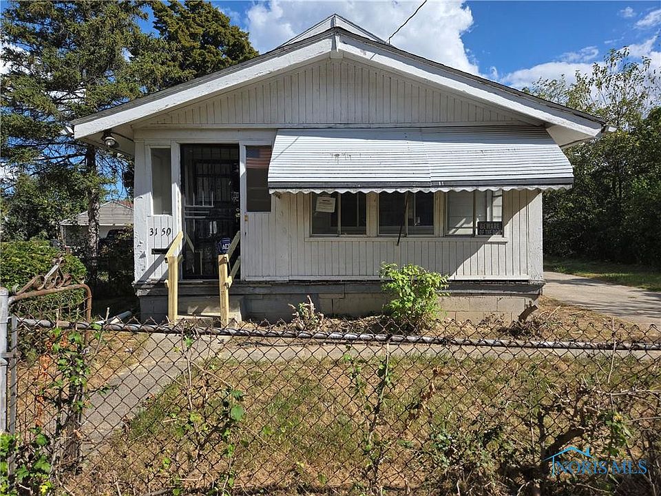 Two-bedroom basement ranch style home. 60' by 120' lot with some fencing. Large backyard, and a two-car garage. Enclosed front sun porch, formal living room and formal dining room. Kitchen has space for a table. Full basement with laundry connections. This home has possibilities with repairs and updates.