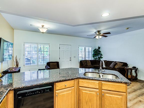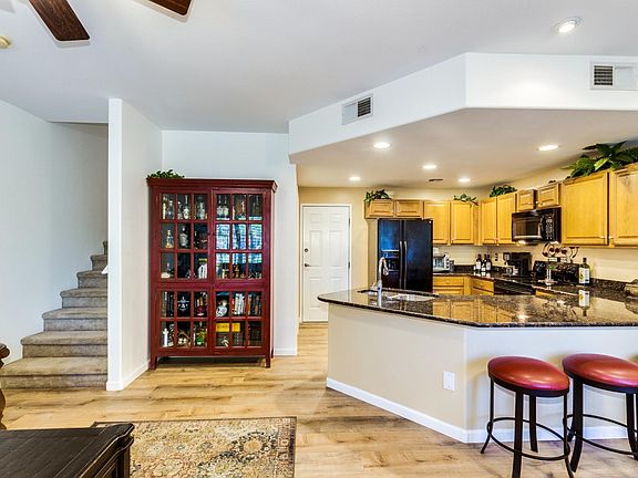 Modern Conveniences & Entertainment, All Within Your Reach! Masterful design and luxury are uniquely embodied in this 3 bedroom 2.5 bath Townhome/Condo with 1,372 SF of living space. Upon entering the home you are greeted with softly filtered light, plantation shutters and gorgeous natural light wood flooring. The island kitchen features granite countertops, black appliances, pantry and light wood cabinetry. The spacious bedrooms showcase high end plush carpeting and ceiling fans. The master bedroom has a walk in closet and it's very own private balcony. Plus, there is a built in desk. Just outside you will find lush greenbelts and tons of shade trees-an ideal setting for a picnic, tranquil walk or a nice jog! Look no further! Book your showing today! Your dream home awaits!