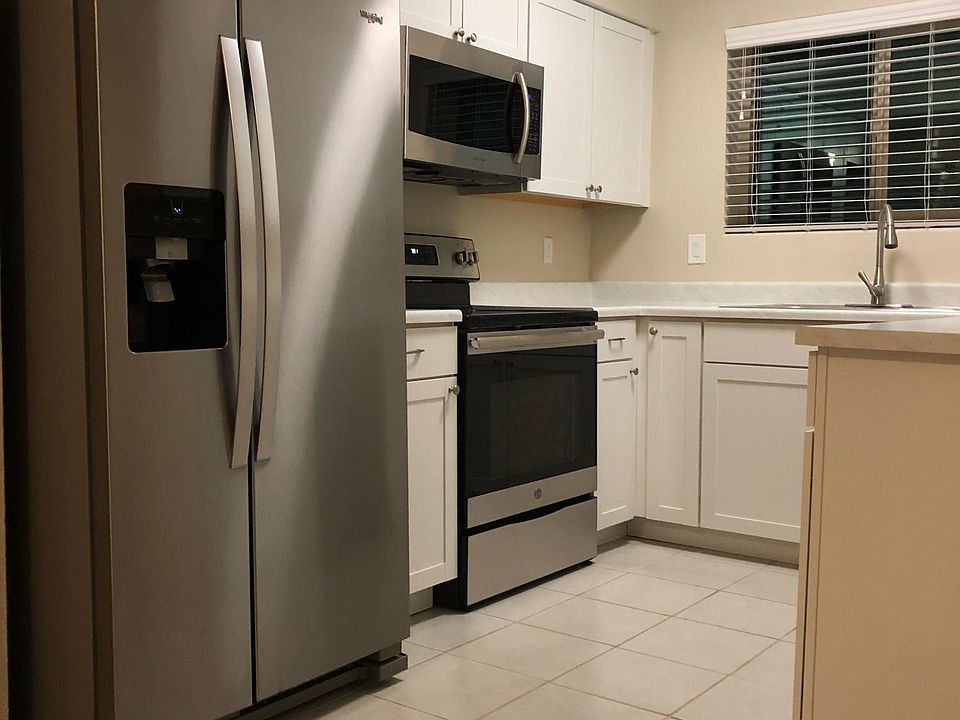 NEW RENOVATION - spacious, clean, & bright 2 bedroom, 1 bath unit. New bathroom (tub, toilet, vanity), new kitchen (cabinets & countertop, stainless steel appliances), new ceiling fans & lights throughout. Fresh paint & new w 2" faux wood blinds. Plenty of parking, washer/dryer hook-ups in private storage unit! Quiet street of fourplexes with landscaping and trees. Section 8 or vouchers welcome!! Tenant only pays electric - water, trash, & sewer included in rent