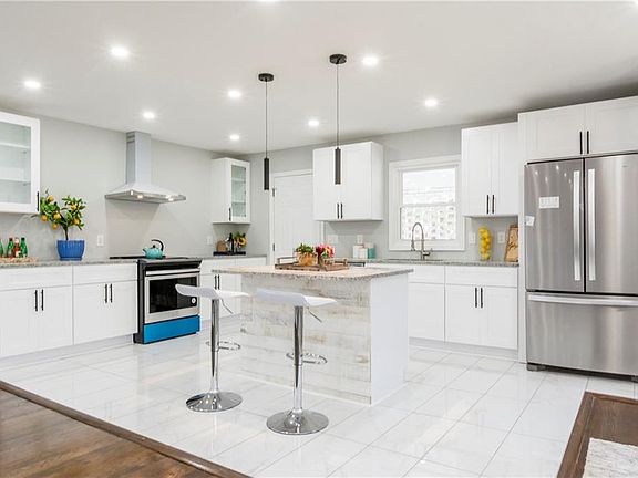 - Kitchen Features: Breakfast Bar, Eat-in Kitchen, View to Family Room, Stone Counters, Kitchen Island, Cabinets White
