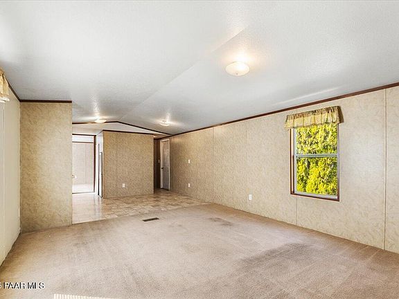 Located near picturesque Willow Lake, this 3-bedroom, 2-bathroom manufactured home offers a central location close to shopping, dining, medical facilities, and schools, making everyday living easy and convenient. The home sits on a spacious .25 home site, and recent updates, including new skirting and newly constructed front and back stairway landings, enhance the exterior's appeal. Step inside to discover a comfortable open-concept great room, where the living room, kitchen, and dining area all flow seamlessly together. The living room offers plenty of space for relaxing or entertaining, with large windows bringing in natural light. The kitchen features an electric range, dishwasher, refrigerator and offers plenty of counter space and cabinetry to store all your cooking essentials.