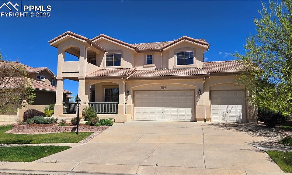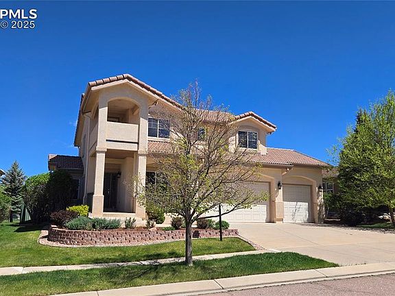 Pride of ownership shows in this stunning 2 story home in the desirable Pine Creek neighborhood is a must see! The is property features hardwood floors throughout and an open floor plan on the main level, with a large living room, complete with gas fireplace, large dining area and a spacious gourmet kitchen. The kitchen contains stainless steel appliances, a gas stove, built in wine rack, and spacious cabinets and pantry for ample storage. The beautiful tile backsplash is accented with windows, allowing more light into your workspace, and the island that doubles as a breakfast bar offers even more room to cook or entertain. The sitting room at the front of the house can be used as a quite place to read. Walk out to the backyard's covered patio from the dining area and you'll find the carefully landscaped yard, backing to open space for a quite retreat. The second floor holds all three bedrooms. The primary bedroom, facing the back of the property, has it's own private 5 piece bathroom with a large walk in closet. A second closet is found in the primary bedroom as well for even more storage. One of your secondary bedrooms contains access to a private covered balcony, with the perfect spot to sit and have a cup of coffee or tea and unwind, while taking in the view of Pikes Peak to the west. The basement is room for your imagination. It could be finished and used as additional bedrooms, living area, work-out room, game room, or simply use for storage as is. The garage is an oversized 3-car, with plenty of room for your projects and toys, or to stay safely out of the weather. Coveted District 20 schools and close to everything, this one won't last long!!