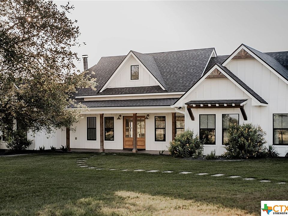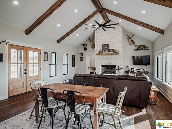 MODERN FARMHOUSE DREAM RANCH!!! This barely lived in, darling 3-2 home on fully fenced 33 acres is a perfect retreat to peace and serenity. Currently AG exempt through a grazing lease. Nice level land with wooded areas and a stock/ wildlife pond. Casual elegance abounds inside the home with luxury vinyl plank floors throughout, all waterproof; NO CARPET! The kitchen has beautiful leathered granite counters, farmhouse sink, Italian 5 burner gas range with custom vent hood and pot filler, island with breakfast bar, walk in pantry with custom shelving, all open to the family and dining rooms. Dramatic cathedral beamed ceilings and custom stone fireplace finish the look. Split bedrooms, with a spacious master suite and ensuite bath. Enjoy sweeping, tranquil sunsets and a variety of wildlife from the covered back porch. There's a 40x40 insulated shop with two 14x14 roll up doors for pull through and attached 25x40 awning, with electricity. A slice of Texas heaven!!!