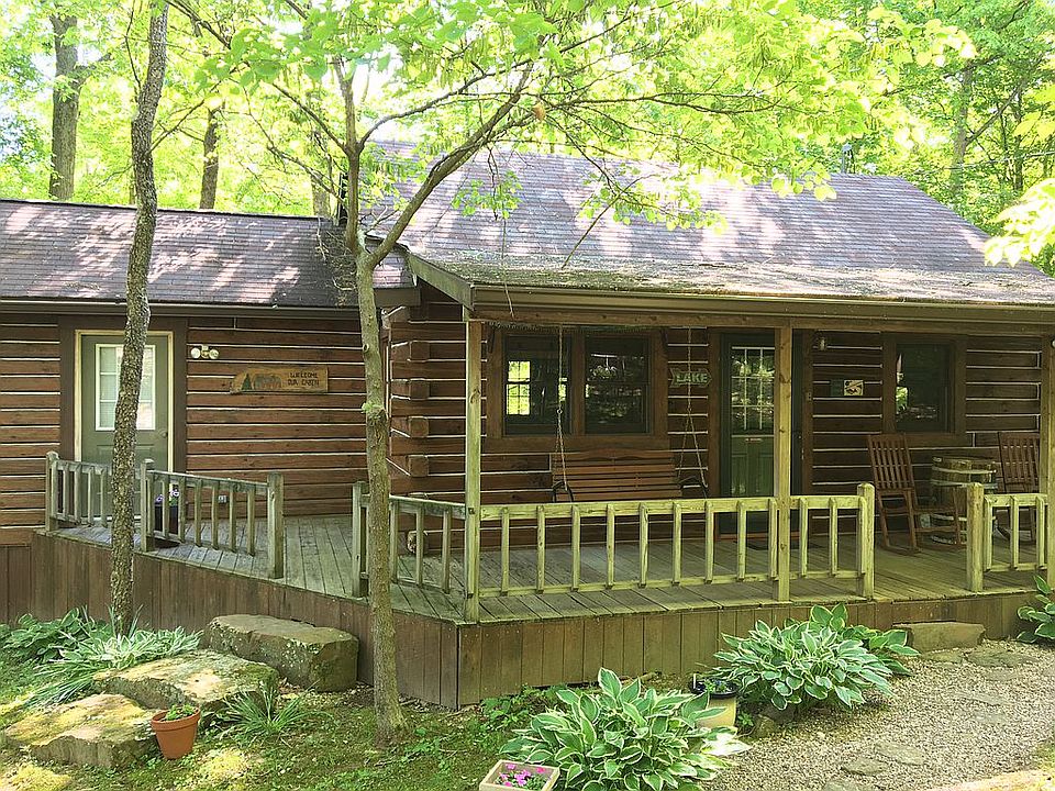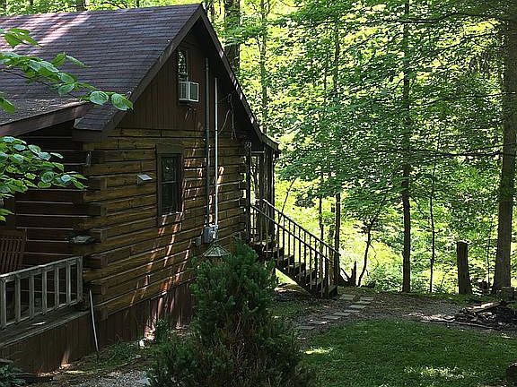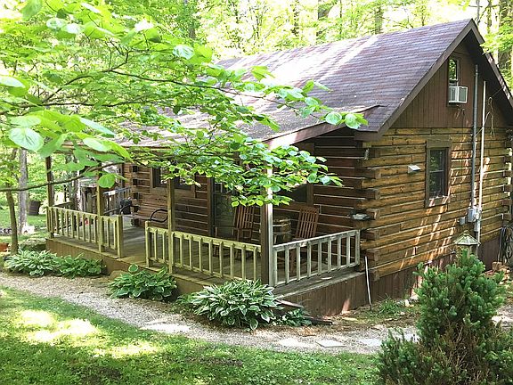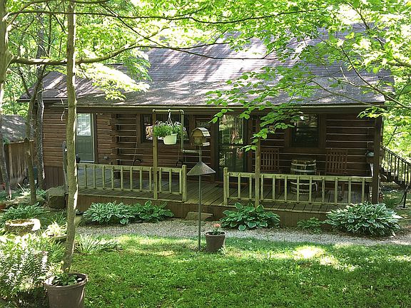 Cabin is being sold furnished! True log cabin located 1.5 miles from Patoka Lake State Park entrance, Patoka Lake Winery, and restaurants. Within a few miles of multiple boat ramps. Situated on 1/2 acre. New roof installed Aug. 30, 2022. March 2021, all windows were replaced, and brand-new windows were installed. February 2021 brand new Amish built kitchen cabinets (self-closing feature on drawers and doors), laminate countertops, and appliances in the kitchen were installed. Master bath flooring was updated and replaced. The cabin has 1 bedroom on the main floor with a queen-sized bed, and its own full bathroom with a walk-in shower. It has a sleeping loft with 1 queen bed and 2 twin beds, a 2nd full bathroom with a tub/shower combo on the main floor, a living room with a flat screen TV, a kitchen with a 4-burner electric stove and refrigerator. There are stackable washer/dryer hookups located in the kitchen, currently behind the cabinet that has the microwave in it. Cabin has a screened-in back porch with a ceiling fan, and a deck that overlooks a creek within several wooded acres, and a separate deck that has 4 bar stools behind a piece of walnut live edge that face the creek and wooded acreage! You will find a nice sense of peace and solitude right here! Cozy up on the patio furniture on the back porch and enjoy the peace and quiet! 8x10 storage shed with electrical available on backside. There is a circle gravel drive at the top of the hill from the cabin. This drive can be used for extra vehicle parking or will accommodate a 22' boat. Cabin is currently being used as a vacation rental. Possession will need to be on or after August 1, 2023.