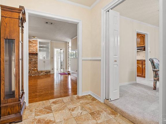 Are you searching for a peaceful and serene oasis? Look no further! Boasting three bedrooms and three bathrooms, this custom-built home in Wilde Lake Estates is the ultimate sanctuary. This exquisite home is situated on over 1.5 acres with a stunning water view in the backyard. The seller, who specialized in building custom homes, constructed this house with top-notch upgrades, including added concrete piling under the foundation to ensure its longevity. As you enter the foyer, you'll be greeted by an elevated formal dining room on the right and an elevated office on the left—perfect for anyone working from home. The sprawling sunken living room features hardwood floors, a wood burning fireplace with a brick-effaced hearth, and built-ins, making it the perfect spot for entertaining guests or unwinding at home with loved ones. For those who love to cook, this kitchen is a dream come true! The kitchen is equipped with ample cabinets and granite counter space, a smooth surface cooktop, a wall oven, a cabinet pantry, a dining nook, and a full pantry located in the hallway. The in-law suite area is tucked away for privacy, and the master suite, guest bathroom, two storage closets, and an additional bedroom are located off the living room's hallway. The master bedroom is spacious, with a sitting area, closet, and new carpet. The master bathroom features a large walk-in closet, double vanity, jetted garden tub, heat lamps, and a walk-in shower. Relax in the family room at the end of a busy day, fishing or enjoying the lake view while sipping on a drink from the wet bar. This home also comes with a sprinkler system fed by an irrigation well, hurricane protection devices, a security system, a 250-gallon propane tank, a whole-house generator, a geothermal AC system with loops for cooling the main house, and a separate HVAC unit for the family room. Take advantage of this opportunity to own your slice of paradise.