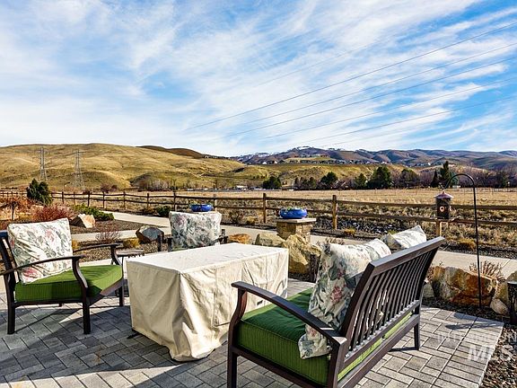 Charming primary suite on main townhome located in highly sought after Harris Ranch! Grab your coffee & take in the east morning sunrise on your front patio overlooking common area, seasonal creek & incredible foothills. Spacious great room is light & bright w/generous east facing picture windows, stately stone wall floating shelves & built- in lower cabinets for additional storage. Stately kitchen w/amble quartz counters, custom painted cabinets, full tile backsplash, 6 burner industrial range, SS dishwasher, & built-in entertainment bar. Walk-in pantry & tons of storage! Flexible layout w/oversized 4th bdrm perfect for bonus, home gym features oversized picture windows taking in the incredible views. Loft makes great flex space. Enjoy the evenings on your extended private patio off the dining room w/additional shade & stone pathway connecting to driveway. Just steps away from the greenbelt, Boise River, trails, eateries, coffee shops, & easy access to downtown, interstate & Micron.