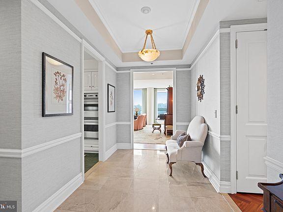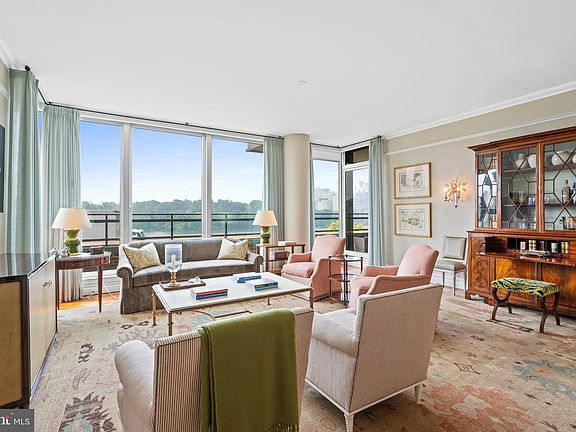 The Residences at the Ritz-Carlton Georgetown are the epitome of luxury living in DC. The Class A full service building offers highly desirable amenities including 24hr concierge, porter, and valet service. The building also has secure assigned parking, a fitness center, and fine dining with room service. This stunning unit is south-facing and provides panoramic views of the Potomac River, Roosevelt Island, and Rosslyn. The residence is graced with hardwood floors, high ceilings, elegant moldings, and high-end finishes throughout. The beautiful unit includes updates and design features by Andrew Law. The gracious entry hall has marble floors and a tray ceiling. It provides seamless flow to the main entertaining spaces. The open living room and dining room is generously scaled and offers a wall of floor to ceiling windows and direct access to the private terrace. The well-appointed kitchen has high-end appliances and abundant cabinetry storage. There is also a beautiful powder room with Waterworks fixtures. The unit has three light-filled bedroom suites, including the luxurious primary, all with marble bathrooms and oversized closets. The primary bedroom has a spa-inspired en-suite bathroom with dual vanities, a frameless glass shower, and separate soaking tub. There is also a rarely available 65’ private terrace with picturesque views of the Kennedy Center, Potomac River, and Georgetown Waterfront. One garage parking space and one storage unit convey with the unit. Pets allowed.