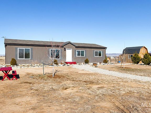 Looking for a hard-to-find, well maintained horse property? As you drive down the lane to the house you will see a round pen & a breaking pen for starting colts. An arena has been started & a few fence rails on site will be left for the new owner. Paddocks have access to the frost freeze spigot for watering your animals. New concrete pad can be used for a shop or detached garage with permit. This like new 2018 Fleetwood manufactured home features: brand new kitchen cabinets, countertops, oven/range, new bath vanity and neutral laminate flooring. The open, light filled living space feels spacious & the split bedroom layout offers privacy. Bonus room off the hallway could be as a family room, workout room or office space. Views of both Bennett Mountain & the Owyhee Mountain range. Ride your horses on this 19.35 acre parcel or take a spin on your dirt bike. Well house shed has 220 amp power & 30 amp RV plug. Make an appointment to view today before it is gone!
