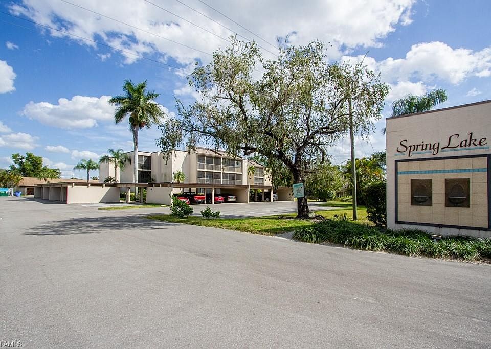 TERRIFIC OPPORTUNITY TO BUY A LARGE 3 BEDROOM/2 BATH CONDO CLOSE TO THE BEACH! 2nd floor End Unit with ELEVATOR. With Almost 1,400 square feet of living space, this condo offers two lanais, Large Kitchen with lots of cabinets and counter space. Master Bedroom has a walk-in closet, updated bathroom, and a door to the lanai. Storage closet for all of your decorations or even beach stuff. Covered Carport #206 close to side entry. Spring Lake Condos is located on Cypress Lake Drive walking distance to Bell Tower Shops, Costco, Dining, and on a Bus Route to airport and beaches. Large Porcelain Tile Floors and Berber Carpet in Bedrooms. Move-in Ready and won't Disappoint! Trane Air Conditioner and Water Heater have been replaced. Beautiful Natural Park Like Setting with lakes perfect for fishing, community pool, and clubhouse. What more can any snowbird or full-time resident want?