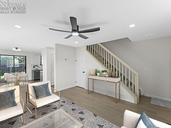 Welcome to this stunning remodeled 2-bedroom, 2-bathroom townhome offering modern style and everyday comfort. Step inside to discover new flooring and contemporary lighting throughout that creates a bright and inviting atmosphere. The renovated kitchen features new cabinets, new stainless steel appliances, and a sleek backsplash, creating a clean and modern look. In the upper level, you’ll find a beautifully remodeled full bathroom that you’ll fall in love with. Enjoy your own fenced patio with extra storage, perfect for outdoor relaxation. A reserved carport space is conveniently located just steps from your front door and plenty of guest parking. Perfectly situated close to public transportation, shopping, dining, and the Colorado Springs Airport, this home offers easy access to everything you need. Move-in ready and designed with care, this townhome is the perfect place to call home!