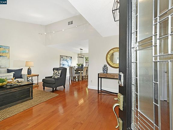 Stunning 4 bed 2 1/2 bath located in one of Walnut Creek's most highly sought after areas. Open style foyer leads into the spacious living room w/ vaulted ceiling & large windows that drench the room w/ natural light. A few steps leads you thru the dining room area & well designed kitchen which features gorgeous countertops, Viking cooktop, abundant custom cabinetry w/ roll outs, stainless appliances & breakfast bar. Open concept kitchen combined w/ step down family room area, refaced mantle w/ gas fireplace. Downstairs office/bedroom and 1/2 bath. Spacious inside laundry room w/ storage. Upstairs features the Primary Bedroom en- suite w/ office workstation, walk-in closet w/ designed closet systems style storage, dual vanity dressing area, separate stall shower w/ majestic views of the Diablo foothills. 2 additional bedrooms and bath w/ slated tile and skylight. Majestic resort style backyard complete w/ sprawling lawn, outdoor kitchen, gorgeous pool, beautiful paver patio & separate spa. Perfect for gatherings & entertaining while relaxing next to the serene koi pond and waterfall. Tesla Solar. 3 car garage + additional storage. Smarthome set up + high efficiency HVAC. Located near neighborhood park, Whole Foods, shopping, and top rated schools. This one checks all the boxes!