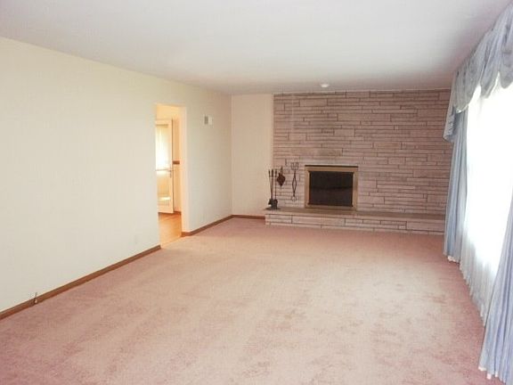 This home offers a large living room with fire place and carpeting, large kitchen with stove, refrigerator, dishwasher and lots of cabinet and counter space. Off of the kitchen is a large dining room with hard wood floors and french doors leading out to the spacious deck. There are three bedrooms with carpet on the first floor as well as two full bath rooms and laundry room with washer and dryer hook up. There is a large full basement with another fire place and two extra rooms. There is a two and a half car garage and central air. This house is on a well system and has a water softener. Sorry, no pets. Tenant responsible for electric, yard and bed up keep and snow removal. Tenant responsible for electric, yard and bed up keep and snow removal.