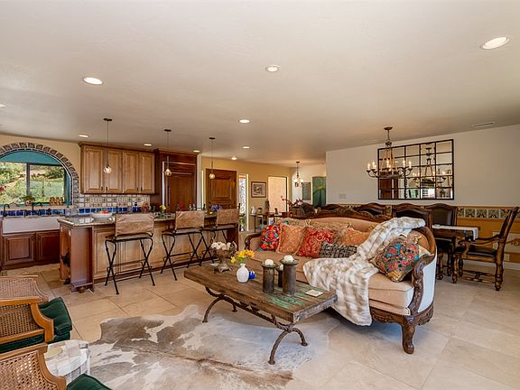 Introducing a beautiful custom, Spanish Hacienda! This SINGLE LEVEL home features amazing finishing touches throughout including custom decor tile, upgraded kitchen, expansive windows, pool, large deck & picturesque views of mtns & valleys. The kitchen has a large, granite island, stainless steel appliances, farmhouse sink, & authentic Spanish decor! Minutes from shopping, freeways, restaurants, etc, this home offers the privacy of rural living yet comfort of being close to town! Designers dream home!