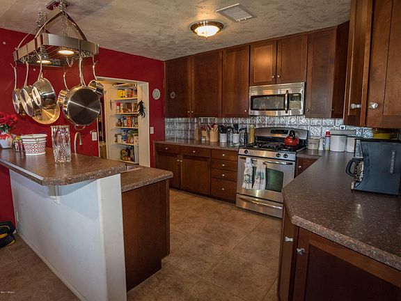 Seller says to bring all offers. Come see this delightful NW area home on 1.39 acres. This property is the original home of the 640 acre Huffman Homestead of 1931 with a signed deed by President Herbert Hoover. It has an easy flow from the kitchen to the living room to the AZ room. The AZ room has beautiful flagstone flooring and old rustic wood walls. Living room has a wood burning flagstone fireplace. The kitchen comes with SS appliances. Pantry and laundry room is off of the kitchen. Master bedroom has its own bath. Second bedroom has two rooms with space for an office or exercise room. Has a 20' x 20' detached one car garage/workshop. Covered patio, huge walled in back yard with a 33,000 gallon salt pool and pool house with toilet. Pool pump and salt cell new in 2016. Front yard has a small kiva sitting area. The back yard has a large kiva and sitting area with counter that is for a BBQ and sink. Back yard has a small orchard with eight fruit trees, orange, apple and peach with room for four more trees if wanted. Orchard is irrigated with a timer. Has a 32' x 24' greenhouse with running water. Has two chicken coops. One coop is set up for fryer chickens it is 4' x 8' and has 10' x 12' enclosed run. The other coop is 8' x 8' with six nests the run is 22' x 12' and is enclosed with a metal roof both have running water and electricity. With misters for those hot summer days to keep the hens comfy.