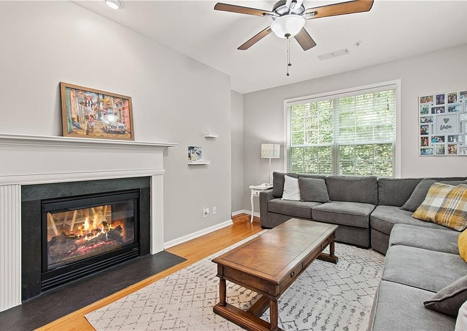 Atlanta living at it’s finest.. Location, location, location!!! Nestled away in a quiet and tranquil setting in the sought-after Flats at Riverwalk, enjoy city living in a park-like setting. This STUNNING and immaculately-maintained 3 bed/2 bath one-level END UNIT with 2 RESERVED COVERED PARKING SPACES is just minutes away from I-75 and I-285 for an easy commute - and all of your favorite attractions!! Updated with new paint and carpet and the largest floorplan available, this well-appointed space offers an open floorplan with kitchen views to the keeping room and family room that share a double-sided glass fireplace for a warm, inviting ambiance. The kitchen boasts a breakfast bar, granite counters and stainless steel appliances. The primary suite features separate vanities, a soaking tub, separate shower, and a water closet as well as a walk-in closet. Bedroom with French doors opening to the family room also makes an ideal home office. Split bedroom plan is great for roommates. The private outdoor balcony backing up to the woods is perfect for enjoying your cup of coffee or relaxing with company. Ample guest parking is available. Bike to Truist Park or The Battery and just steps away from walking trails to the Chattahoochee River. Also convenient to dining – Ray’s on the River and Pappadeaux Seafood just to name a few!! And close to Cobb Energy Performing Arts Center, Cumberland Mall, Silver Comet Trail, and other recreation. Resort style amenities include an inground pool, outdoor grills, an outdoor shower, fitness center, clubhouse and pet walk. HOA fees include trash, water, sewer, and gas.