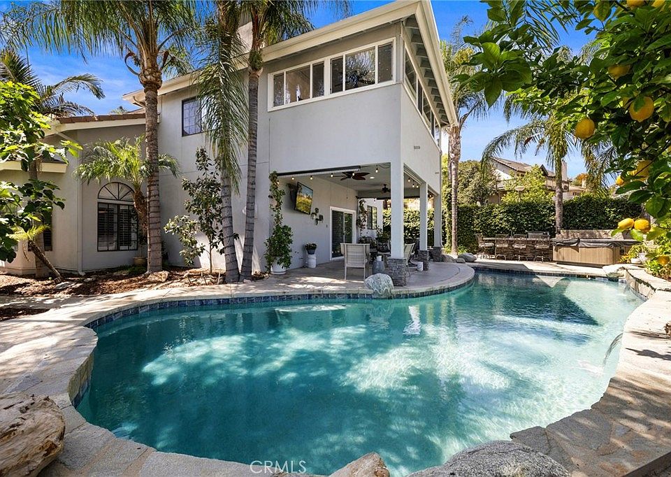Exceptional and unlike anything else on the market, this truly one of a kind farm style property has been completely transformed with over $300,000 in upgrades, just wrapping up a five-year renovation. Located in the guard gated community of Canyon Lake, this exquisite pool home offers designer high-end finishes, RV and boat parking, owned solar, and lake views. This stunning 3000 sqft property offers 4 bedrooms, 3 full baths, a traditional layout, two staircases and a 3-car garage. The interior is appointed with LVP floors, plantation shutters, high baseboards, crown molding, custom interior paint, custom lighting and wood working throughout. The main floor boasts a formal living area flowing into the family room offering a shiplapped fireplace and is open to a private seating area featuring a wine fridge and wrought iron staircase to the 2nd floor. The kitchen has been transformed with stainless steel appliances including a gas stove, two toned soft close cabinets, large island with quartz counters, subway tile backsplash, farm sink, and is open to the large dining room with custom built-ins and access to a private courtyard. The main floor also features an in-law area with a living area, barn door for privacy, one bedroom and a fully remodeled bathroom boasting custom tiled shower and single vanity. The large laundry room boasts tons of storage, a wash sink, subway tile backsplash and quartz counters. Access to the three-car garage is on the way to the second story via the main staircase which boasts a lift for attic access. The second story features two more spacious secondary bedrooms, an open office with built-in desks and shelves and a whole house fan. An amazing secondary bath is appointed with honeycomb tiled floors and shower, free standing tub and new lighting. The large primary bedroom boasts a shiplap accent wall, en-suite with lake views, and a large walk-in closet with custom built-ins. The breath-taking primary bath offers grey cabinets, and a custom shower with three shower heads, porcelain tile floors and walls and a free-standing tub. The private oasis offers a large CA room, stamped concrete, pavers, refinished saltwater pebble tech pool and above ground spa, built-in BBQ with eat-up bar, fruit trees and tons of privacy trees. This list goes on, see attached upgrades for more. Canyon Lake offers a private lake, golf course, horse amenities, sports courts, club house, country club, pool, baseball field, skate park and beaches.