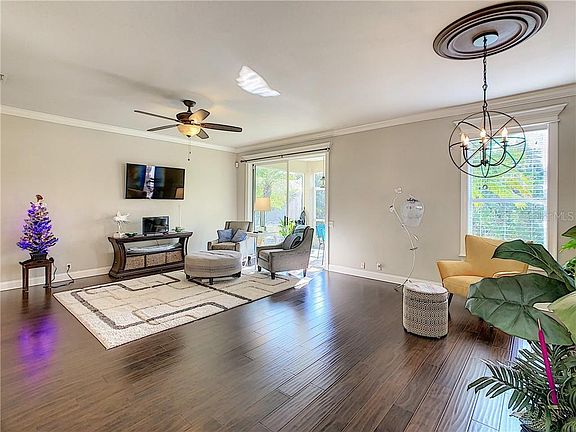 Home for Sale in Carillon Lakes - FL Living at it's best! Gated Entrance w/ Security Guard, Community Pool, Tennis Courts, Walking Trails, Clubhouse, Basketball Court, Fitness Center, Library - Golf Cart Friendly Community. This BEAUTIFUL HOME has 3 bedrooms, 2 baths - gorgeous walnut vinyl flooring in the great room & kitchen - carpet in the bedrooms - crown molding in the great room - granite counters in the kitchen and both baths - open kitchen with lots of counter space and closet pantry - stainless kitchen appliances (included). Natural gas furnace, range in the kitchen, & water heater. Master bath has a large walk-in shower, linen closet, vanity w/ his/her sinks, walk-in closet with 4 wire shelves for hanging clothes and storage, dimmer light switches in great room and master bedroom. Indoor laundry room, washer / dryer (electric) included, pocket door between the laundry room and great room. Two car garage w/ garage door opener, great open floor plan, plus all views from the rear of the home and the screened patio overlook the wooded conservation area - wow! Convenient Location: Near Polk Parkway Toll Road (Rd 570) with easy commute to Tampa and Orlando. Only minutes to the Lakeside Mall on Harden Blvd. Walmart on S. Fla. Ave. Publix on Harden Blvd, Amazon / Geico / Publix Corporate offices, Polk / Hillsborough County Line Rd, hospitals / doctors, and shopping. Call today for an appointment to see this beautifully updated home in a highly sought after community - CARILLON LAKES in Zip Code 33811 - Deed Restricted Community, Maintenance Free Lifestyle.