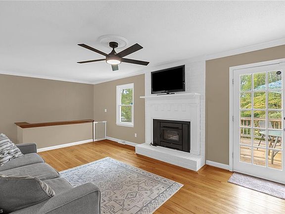 Move-in ready brick home with many thoughtful updates in a private location! Hardwood floors run throughout the main level. The living room with brick fireplace opens to the spacious kitchen, complete with granite countertops, stainless steel appliances and separate dining room. The main living area also features sitting and living rooms, perfect for entertaining or relaxing. The primary suite offers a tiled walk-in shower and walk-in closet. The basement adds more living space—currently used as a bonus room/bedroom—with half bath, 2-car garage, and ample storage. Outside, find great views from the oversized deck overlooking the large fenced backyard. Recent improvements include a new main water line and water heater (2023), HVAC blower motor (2024) plus a new roof and soffit (2024). All appliances remain—even washer and dryer! Please see agent-only remarks for improvements.