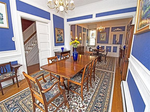 UNIQUE HILL TOP CHARMER W/THREE LEVELS OF LIVING SPACE! Former Convent for the Sisters of St. Albert the Great. Thoughtfully expanded & updated to create spacious private home all while preserving architectural details. Highlights incl. custom stained glass, refinished hdwd flrs, exquisite carved wood gas fp surround, soaring 1st flr ceilings & statuesque windows (replacements). Grand Dining Hall w/2 chandeliers, wainscoting, dentil & oversized crown mldgs, Vintage "Church Library" w/parquet flrs, intricate ceiling. 1st flr Guest Suite w/bath. Updated/Eat in Kit blends nicely & features island, stainless appl. 2nd Flr w/4 Beds/2.5 baths/Laundry Rm & Family Room w/view of the grounds. 3rd Flr w/3 more bedrooms & full bath. Tons of closets ("Shoe Room", Cedar Closet, Giant Walk In). Full bsmt w/WOW workshop, 2nd laundry, game room/bar. Updated Mechanicals. Brick Terrace wraps around to Window Clad Sunroom. Sprawling lawn & lush landscape. 5 window a/c units& 1 flr unit,3rd flr central