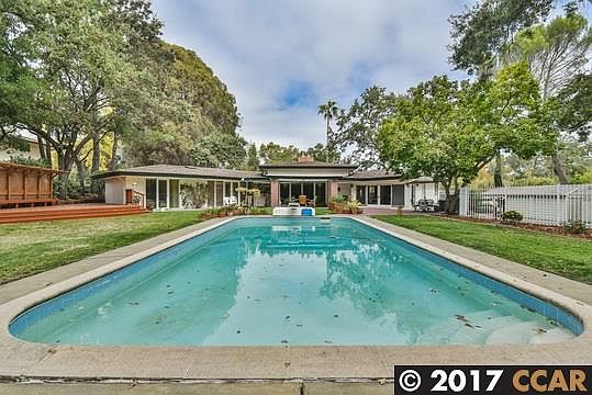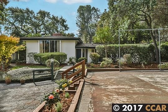 ONE-OF-A-KIND, MID-CENTURY MODERN ESTATE EXUDES OLD WORLD CHARM & CRAFTMANSHIP. Located on one of the largest flat lots in the area, this exceptional single-story property is surrounded by majestic oak trees & a creek. TRANQUILITY ABOUNDS??? Your own security gate insures privacy & seclusion. Lots of windows/skylights bring in waves of natural light. Living & family rms boast a grand 12 foot ceiling, 2-sided gas fireplace & floor-to-ceiling windows. Elegant formal dining rm. Breathtaking kitchen remodel! New carpeting. With well over an acre, this huge 51,000 sq ft lot offers a sport court, inground pool, & gazebo perfect for entertaining. Gardener's paradise w/ an abundance of fruit trees & a practical garden shed. Detached garage w/ attached bonus room. Lots of off street parking for RV or boat. Central location offers an excellent commute close to multiple BART stations & choices of freeway access. Within walking distance of Lunardi's. PLEASANT HILL SCHOOLS!